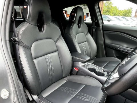 Used 2022 Nissan Juke TEKNA MHEV 1.6L (141 bhp) for sale. Mileage: 26,535 miles. Transmission: Automatic. Fuel Type: Hybrid. Insurance Group: 14E. Colour: Gun Metallic Grey. Doors: 5. Engine Size: 1.6L. Price: £17,995. Features include 19" Midnight Black Diamond Cut and Polished Alloy Wheels, 7 inch Touch sensitive Multi functional colour display screen, ABS with EBD and Brake Assist function, Adaptive cruise control, Air Conditioning, Auto dimming rear view mirror, Auto Stop/Start, Auto-headlamps (on/off), Blind Spot Monitoring System (BLIS), Bluetooth Hands free Phone And Media Connectivity, Climate Control, Cruise Control & Speed Limiter, DAB Radio, Drivers Alert System, Eco Drive Mode, Electric mirrors, Electronic Handbrake With Auto Hold, Fog Lights Front and Back, Front and rear electric windows, Intelligent All round View Monitor (360° colour camera), Full Leather, Heated Door Mirrors, Heated Seats, ThermaClear® Heated Windscreen, Hill Start Assist, Isofix child seat anchor points, Keyless Entry, Keyless Start, Lane Departure Warning System, LED daytime running lights, Low speed pre collision assist, Low tyre pressure indicator with rim mounted sensors and on screen pressure display, Metallic Paintwork, Mobile Integration using Apple CarPlay and Android Auto, Nissan D-Mode For Eco/Sport Driving, Parking Camera, Power Fold Electric Mirrors, Privacy Glass (Rear Windows & Tailgate), Rain Sensing Windscreen Wiper, Rear seat with 40/60 split folding, Satellite navigation system with colour, 7 inch display, 3D and voice, maps and traffic information, Selectable driving modes that affect steering and engine mapping, Speed sign recognition system, Sport Drive Mode, Synthetic leather multi-function steering wheel with telescopic adjustment, Touchscreen Media, Traction Control, USB input/charging port, Bose Personal Plus® Audio System, Rear cross-traffic alert, e-Pedal Step, High Beam Assist, LED Front Fog Lamps.This vehicle comes with 2 keys, MOT, full HPI check, professional valet including paintwork care, comprehensive warranty, thorough Pre-Delivery Inspection with any required servicing carried out to manufacturer standards.
