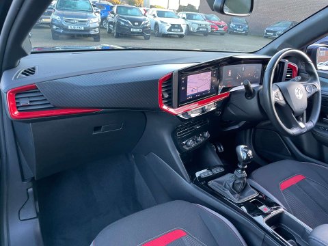 Used 2022 Vauxhall Mokka SRI NAV PREMIUM for sale in Sittingbourne, Kent, includes 18-inch bi-colour alloy wheels with red accents, 12-inch drivers digital instrument cluster, 10 inch touch sensitive LCD central multi-function display screen, 6 speed gear box, ABS with EBD and Brake Assist function and more. Year: 2022 (71), Mileage: 20,700 miles, Transmission: Manual, Fuel Type: Petrol, Insurance Group: 14E, Colour: Diamond Black with Red Details, Doors: 5, Engine Size: 1.2L. Price £14,995.This vehicle comes with 2 keys, MOT, full HPI check, professional valet including paintwork care, comprehensive warranty, thorough Pre-Delivery Inspection with any required servicing carried out to manufacturer standards.